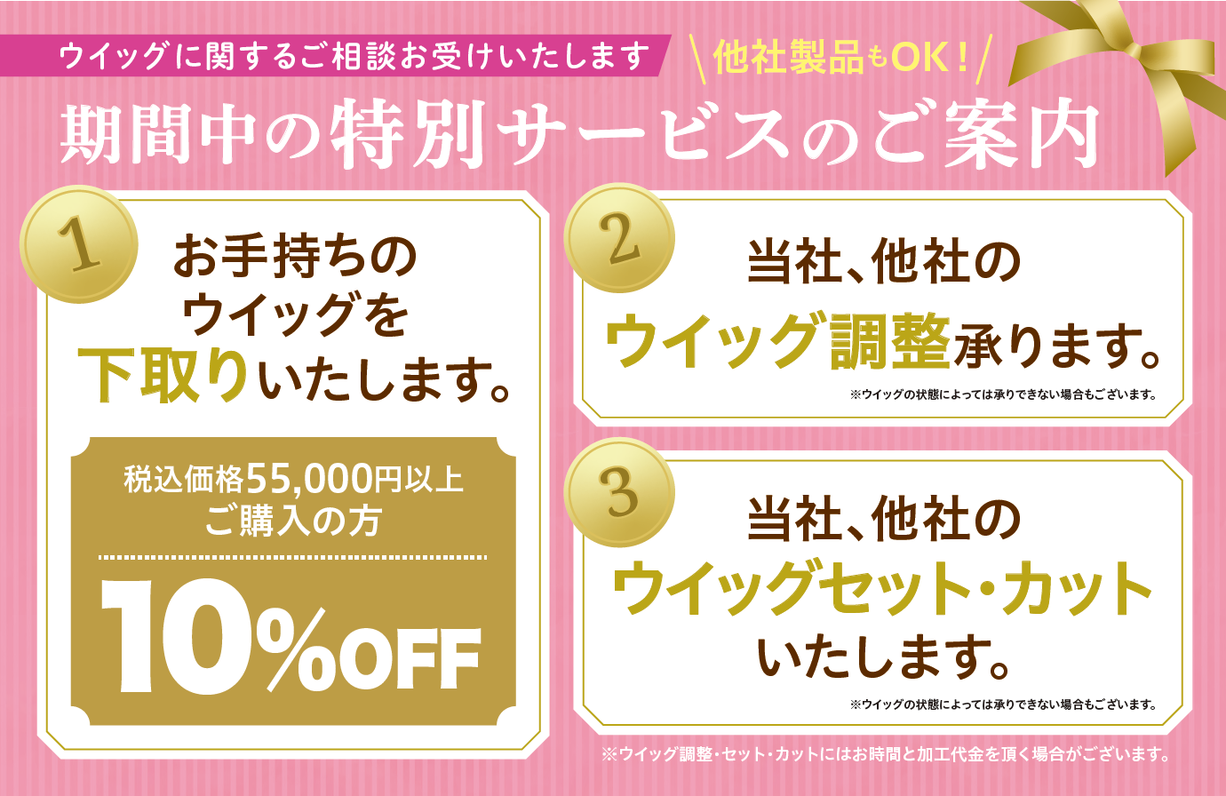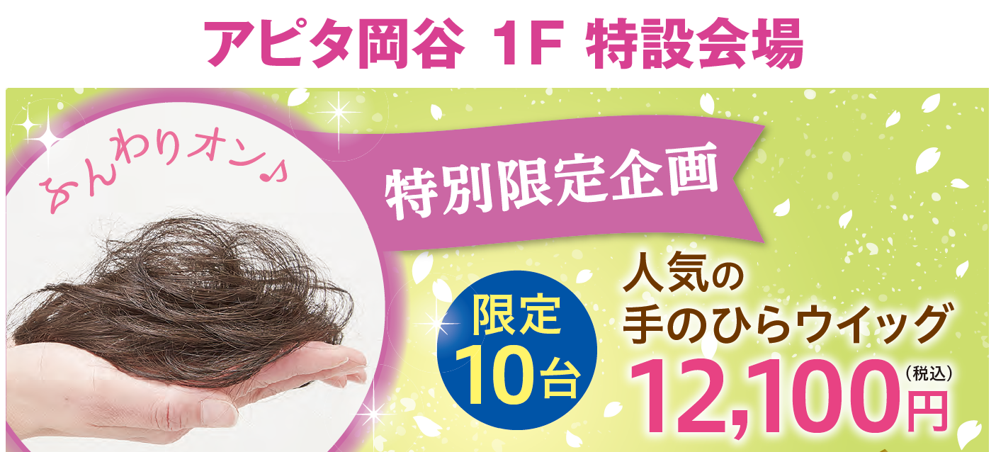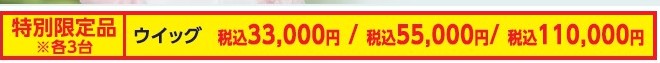 期間中、税込110.000円以上、税込220.000円未満のウィッグをお買いあげの方、店頭表示価格より10.000円引き